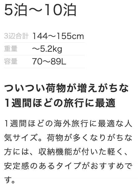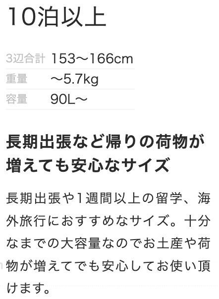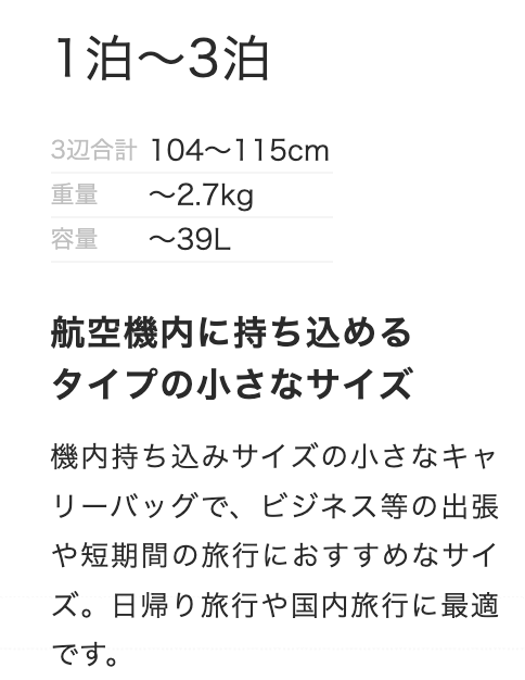 サイズ・宿泊日数から選ぶ